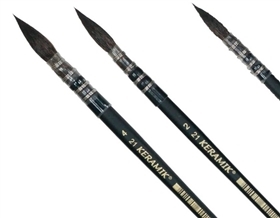 Pincel Keramik Mini Amarradinho 21 Com misto de pelos naturais e sintéticos, o novo pincel Keramik Mini Amarradinho 21 tem formato redondo com ponta em forma de bulbo. Apropriado para trabalhos ricos em detalhes,seu tamanho reduzido e seu mix de pelos proporciona pinceladas mais controladas quando comparado a um pincel de pelos naturais, enquanto oferece maior absorção e retenção de tinta se comparado a um pincel de pelos apenas sintéticos. Seu cabo extra curto com pintura matte preta oferece equilíbrio e conforto no manuseio. Disponível nos tamanhos 0,2 e 4