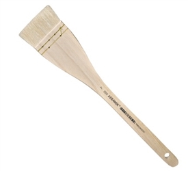 Trincha chata para aplicação de água ou soluções líquidas de cloreto, adesivos ou tintas. Própria para limpar superfícies delicadas. Feita com cerdas brancas e macias de alta qualidade, as quais são cuidadosamente fixadas em rústicos cabos de madeira (clara, sem verniz), sem cintas de metal. O cabo longo proporciona bom equilíbrio.
