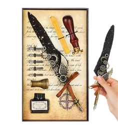 Marcas > CASA DO RESTAURADOR > KIT CALIGRAFIA - PENA PRETA COM DOURADO II + TINTA + SINETE, CERA E BASE + 5 PONTAS