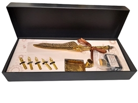 KIT CALIGRAFIA - PENA EM METAL DOURADA I + BASE P/ CANETA + TINTA + 5 PONTAS