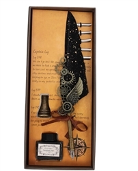 Marcas > CASA DO RESTAURADOR > KIT CALIGRAFIA - PENA PRETA COM DOURADO + TINTA + BASE P/ CANETA + 5 PONTAS