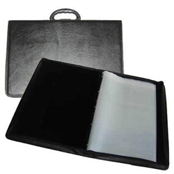 Pasta portfólio A4 em couro sintético com 20 plásticos Interior de veludo com bolso lateral em couro sintético e 4 pinos de metal. Cor azul