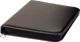 Pasta fichário executiva com zíper em couro sintético.Espaço interno para organização de documento, cartões e canetas - 4 argolas Cor: preta