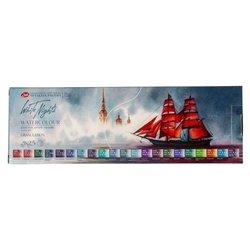 Aquarelas White Nights são criadas para artistas profissionais. Eles são feitos de pigmentos de granulação fina de alta qualidade e uma goma arábica natural como aglutinante.