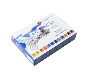 Essa edição limitada de aquarelas em pastilha, full pan, da linha White Nights possui uma incrível seleção especificamente realizada para pinturas de paisagens urbanas.
