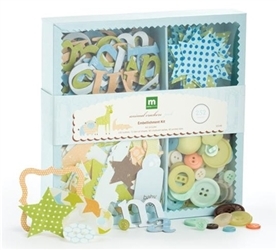 Kit de apliques para scrapbook. 100 botões de tamanhos e cores diferentes. 72 apliques de papel com estampas, tamanhos e formatos diferentes 40 apliques de chipboard com alfabeto. 40 aplique de papel com estampas em formato de estrelas. Marca: Making Memories